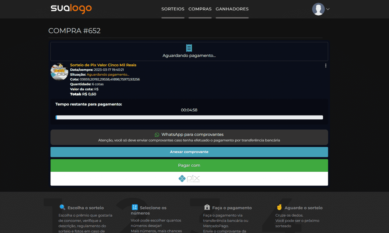 – Anexar comprovante no Whatsapp