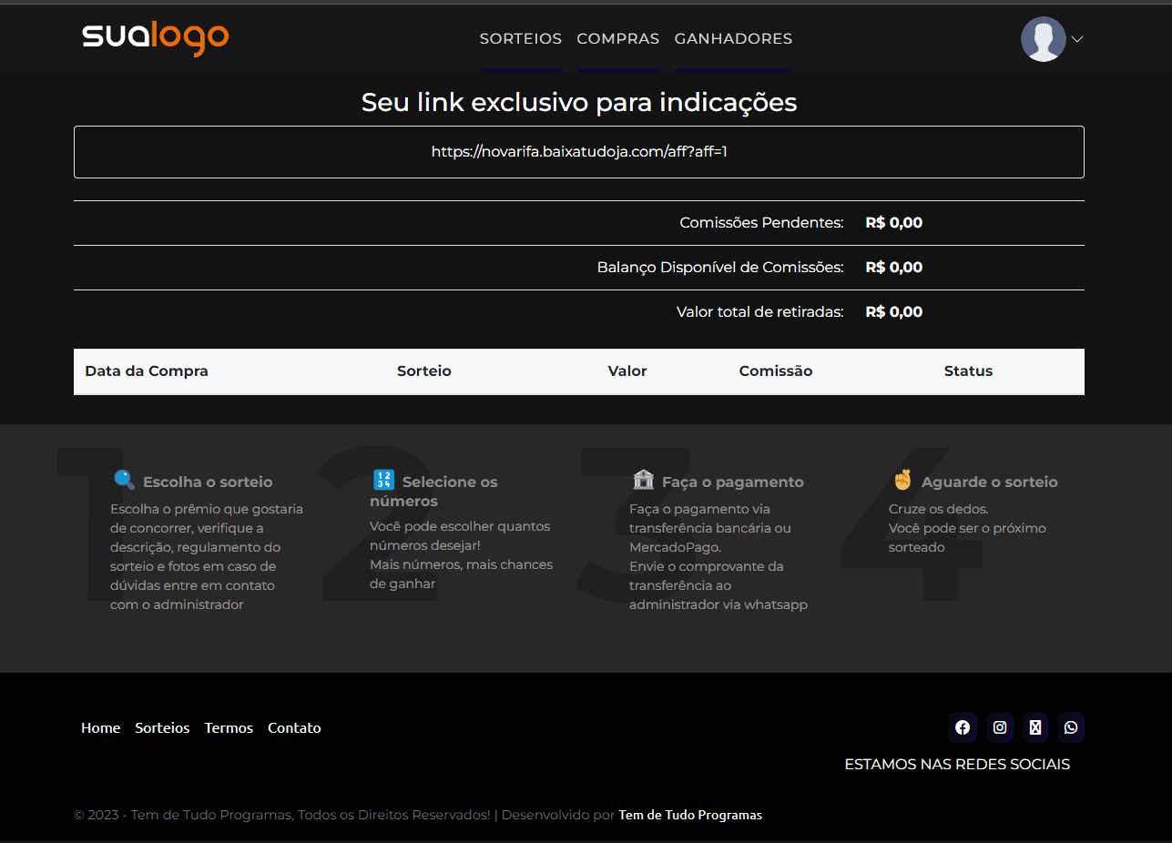 - Uma forma de trabalhar é ter sua renda gradativamente com o seu site de Rifa, você paga valor único e você terá o script de forma vitalício.