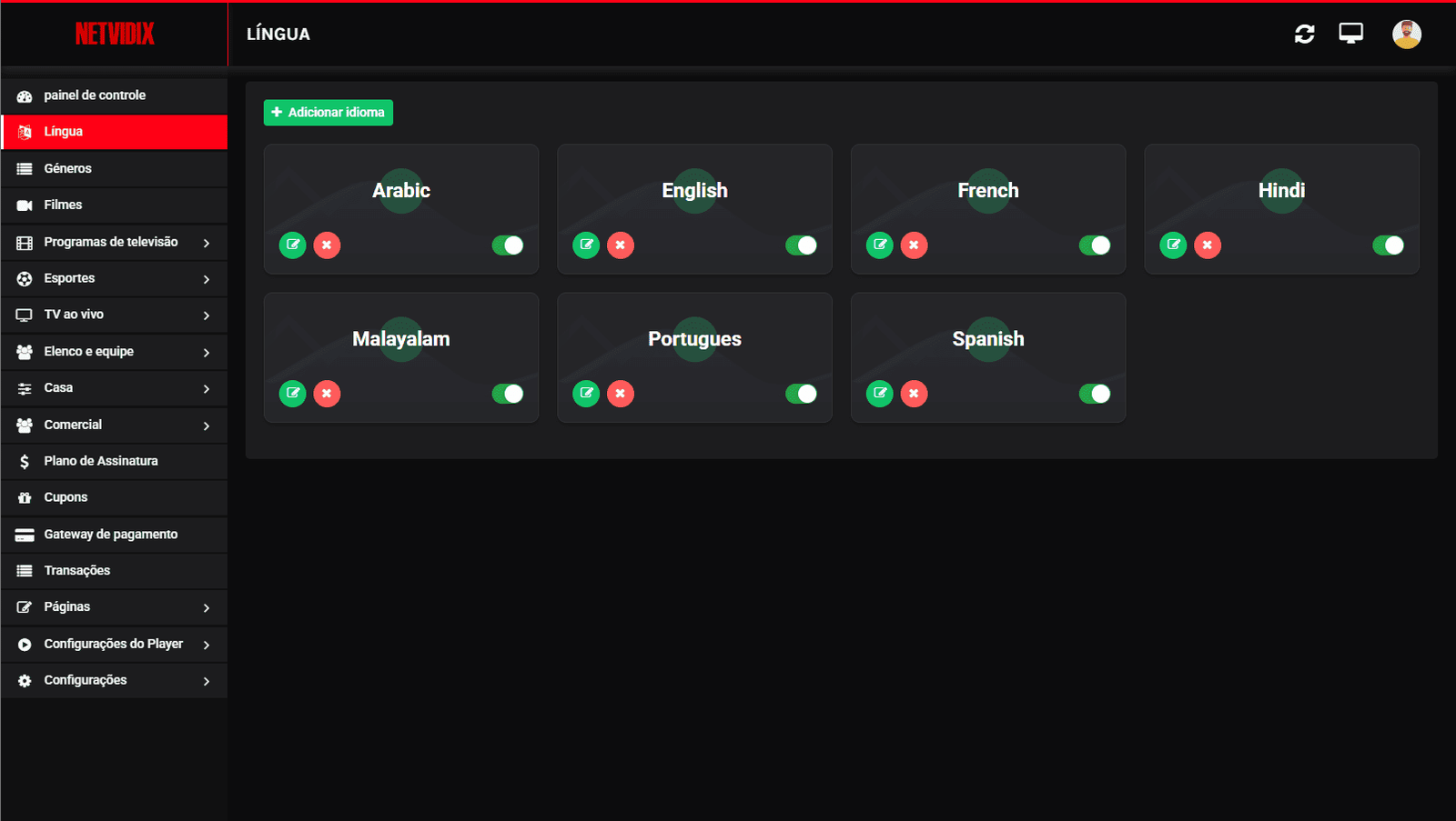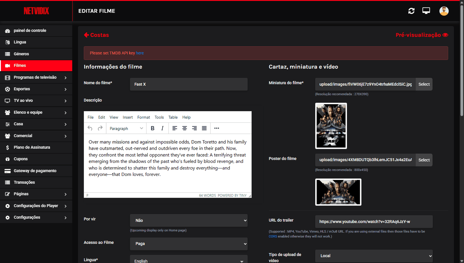 Filmes, programas e esportes têm legendas em 3 idiomas (URL do servidor e tipo de upload do sistema)