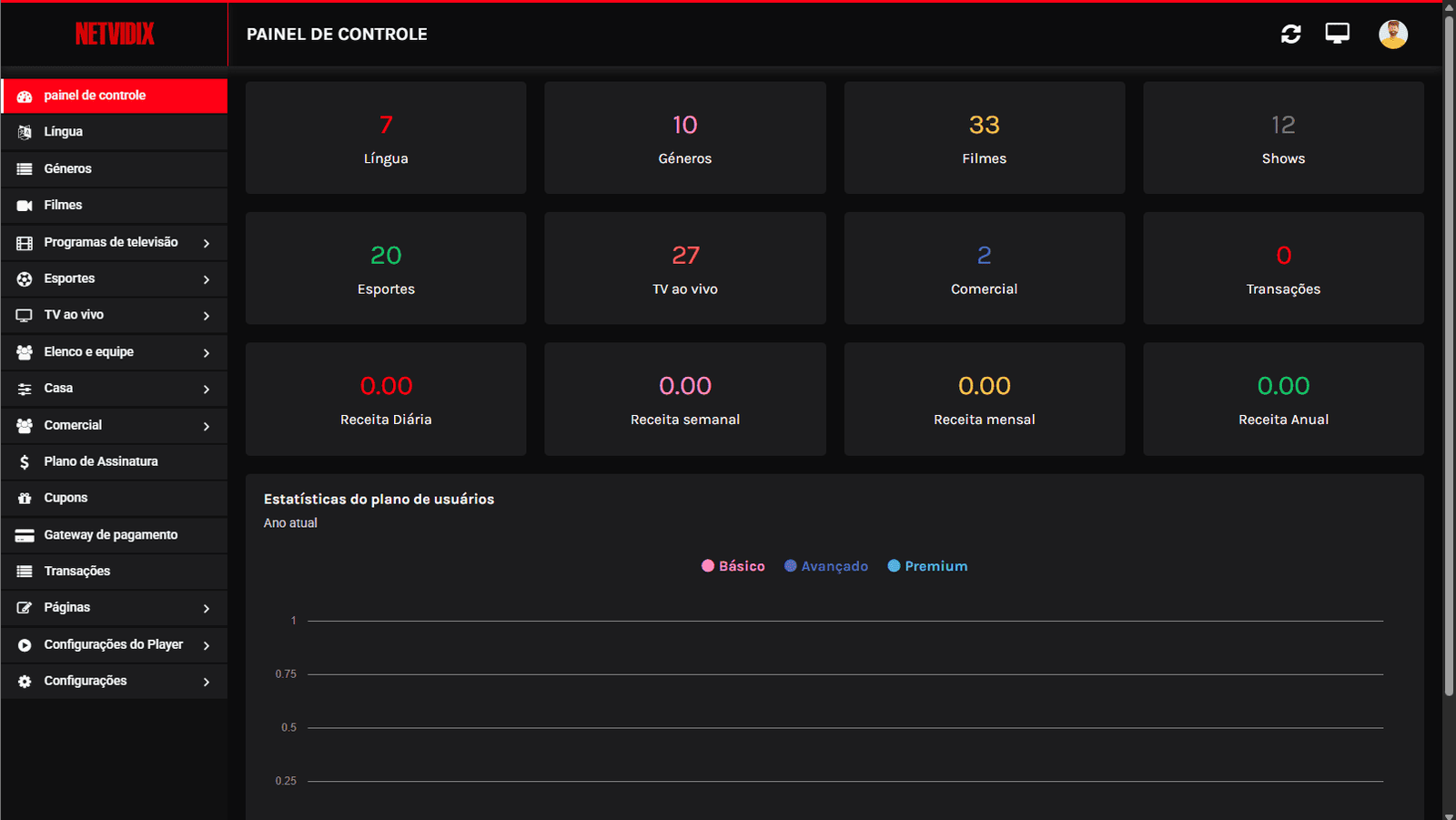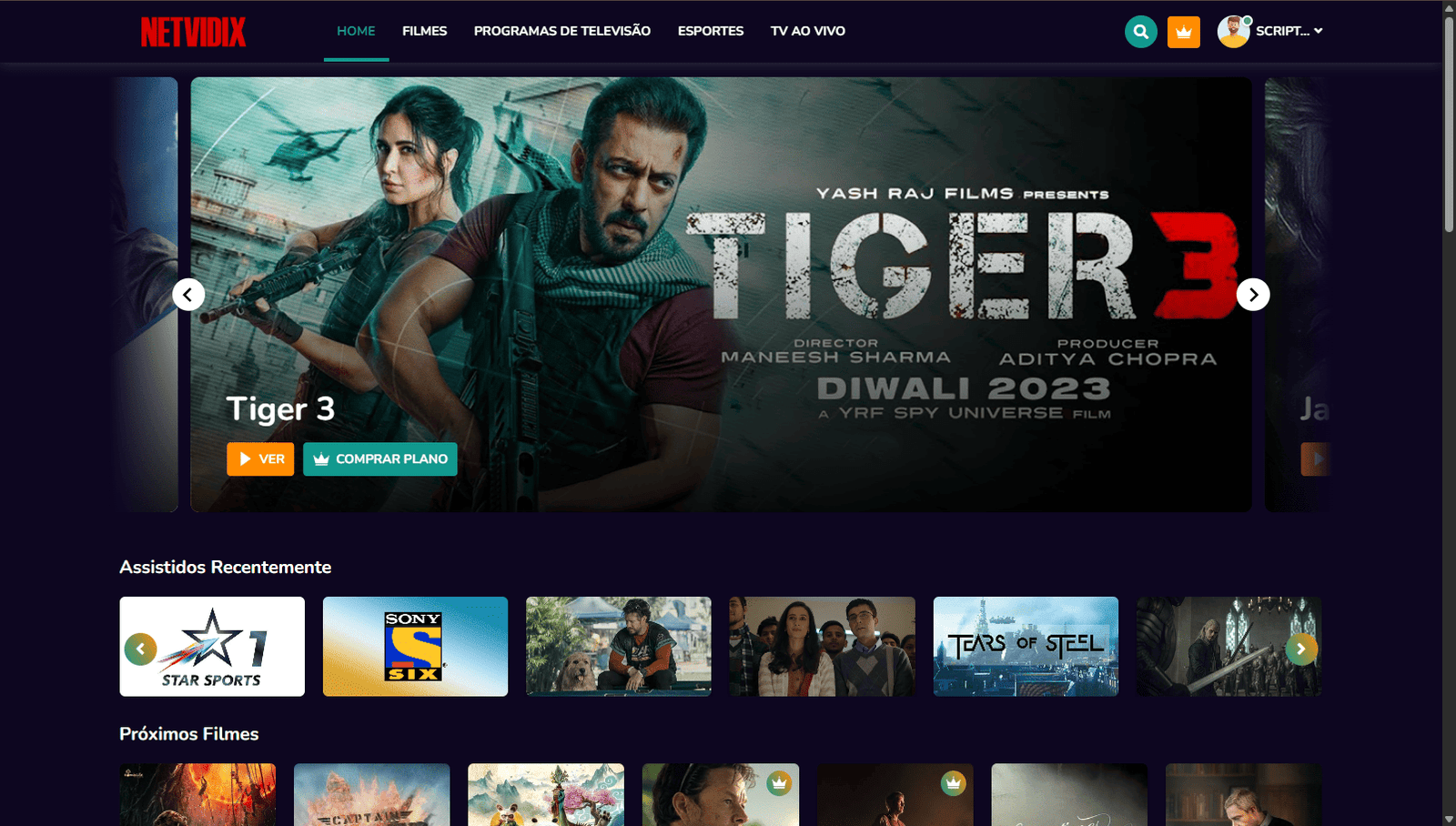Site / Script PHP em Laravel para streaming (nesse script tem possibilidade de cadastramento de programas de TV, filmes, esportes, streaming de vídeos, TV ao vivo, onde ficará segmentado no site).