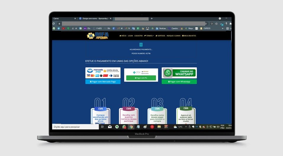 Site com layout moderno e atraente para o usuário uma experiência única ele pode comprar uma rifa em poucos cliques com cadastro e área do cliente onde ele pode ver os bilhetes comprados pagar os bilhetes reservados e muito mais alias o pagamento é reconhecido de forma automática pelo sistema assim economizando tempo e deixando seu cliente satisfeito o site tem opção de mercado pago e pagseg como gateways de pagamento além de poder cadastrar sua conta para pagamento offline cadastrar seu Pix para pagamento manual e também seu Wpp para o cliente mandar o comprovante e tirar dúvidas