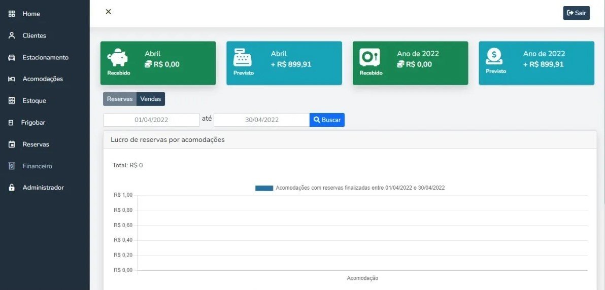 Gerencie suas reservas de forma simples e rápida, visualize relatório financeiros e muito mais!